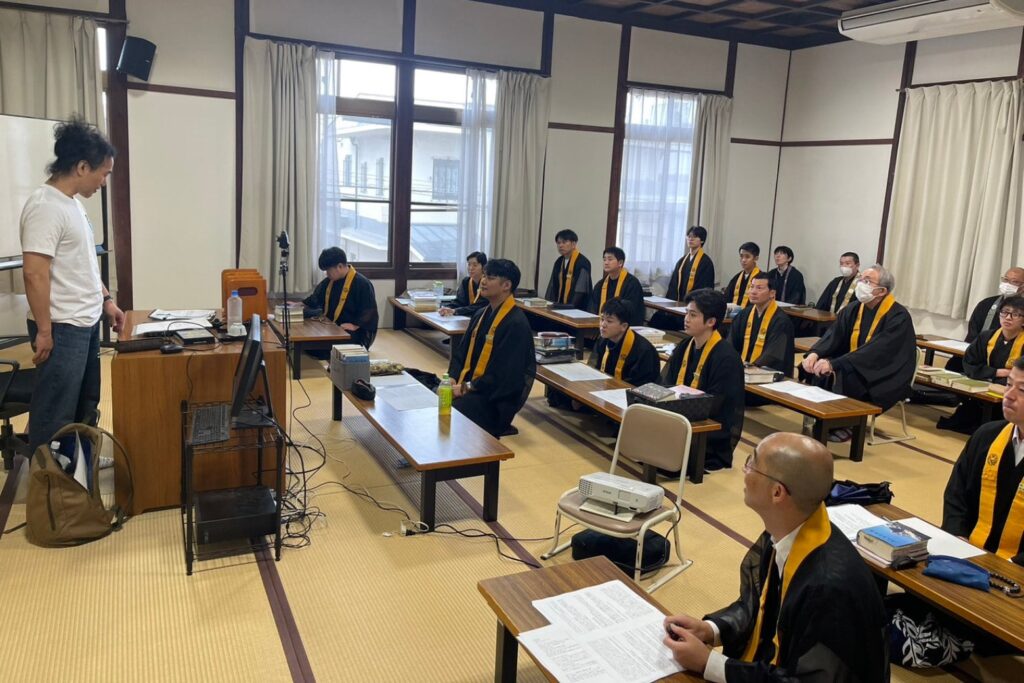 2025年6月に大阪府高槻市にある「行信教校(ぎょうしんきょうこう)」という学校で講演をしてきました。ここは浄土真宗の僧侶を養成する学校で、常見寺(じょうけんじ)というお寺の一角に校舎や寮があります。この学校の授業科目は当然仏教関係ばかりですが、半年に一度、外部から講師を招いて自由に話していただいているそうで、この度、この常見寺の檀家である私に声がかかりました。ここに行くのは除夜の鐘をつく年越しイベントに毎年参加していた幼いころ以来で、訪れてみると、当時は広大に感じられた境内は思いのほか小ぶりでした。道理で年をとったわけです。